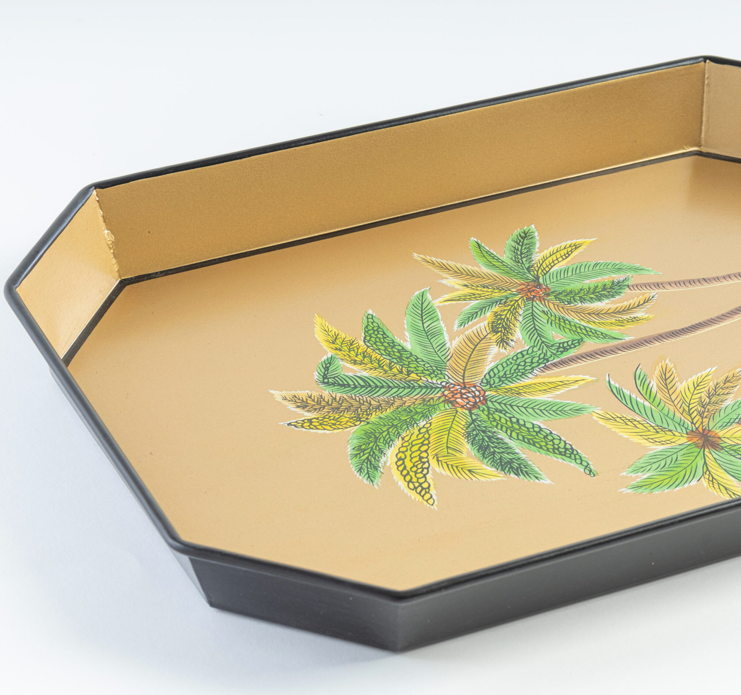 HAND-PAINTED IRON GOLD TRAY-GOLD PALM TREE